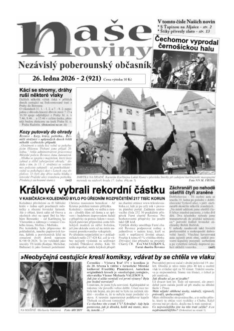 * S Ťapinou na Aljašce - str. 2 * Štiky přivezly zlato - str. 13 * Čechomor vyprodal černošickou halu * Kácí se stromy, dráhyruší některé vlaky * Kozy putovaly do ohrady * Králové vybrali rekordní částku Záchranáři ošetřili čtyři zraněné * »Neobyčejná cestující« kreslí komiksy, vdávat by se chtěla ve vlaku *